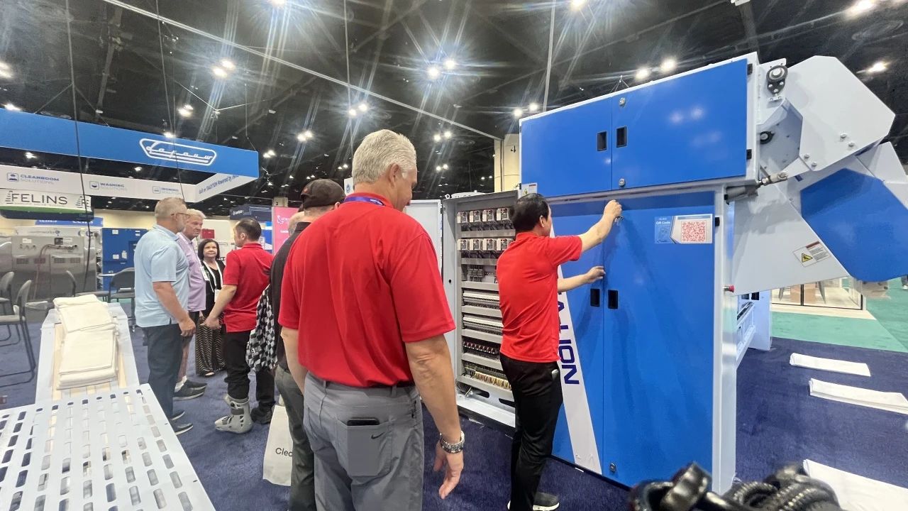 “Titanium”鈦系列洗脫機(jī)與烘干機(jī),聚焦高效洗滌與節(jié)能降耗雙重優(yōu)勢(shì)。通過(guò)精準(zhǔn)控溫、智能水循環(huán)系統(tǒng)及變頻電機(jī)技術(shù),實(shí)現(xiàn)單位時(shí)間內(nèi)更高洗滌量和烘干量的同時(shí),大幅降低水、電、蒸汽消耗,為用戶帶來(lái)經(jīng)濟(jì)與環(huán)保兼具的卓越體驗(yàn) 參展人士對(duì)這一系列設(shè)備表現(xiàn)出了濃厚興趣,在現(xiàn)場(chǎng)海獅人員的詳細(xì)操作講解下,他們對(duì)中國(guó)制造的研發(fā)制造實(shí)力有了更深刻的認(rèn)識(shí),紛紛為海獅機(jī)械的創(chuàng)新能力點(diǎn)贊。